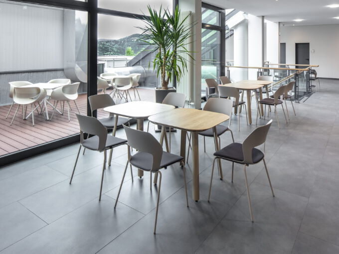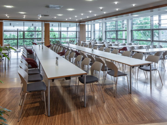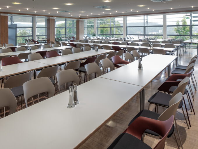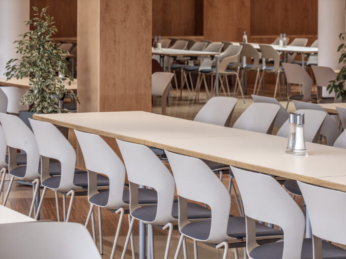 Für die BKK Akademie in Rotenburg an der Fulda haben wir die Mensa und den Café-Bereich mit neuen Möbeln ausgestattet.